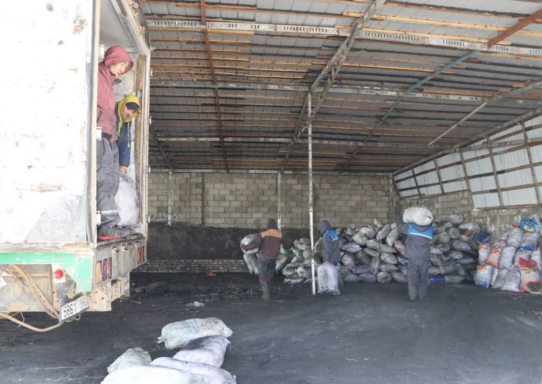 Ачааны машинд пресслэсэн нүүрсээ ачиж МСРТ ХХК-д авчирна.